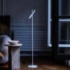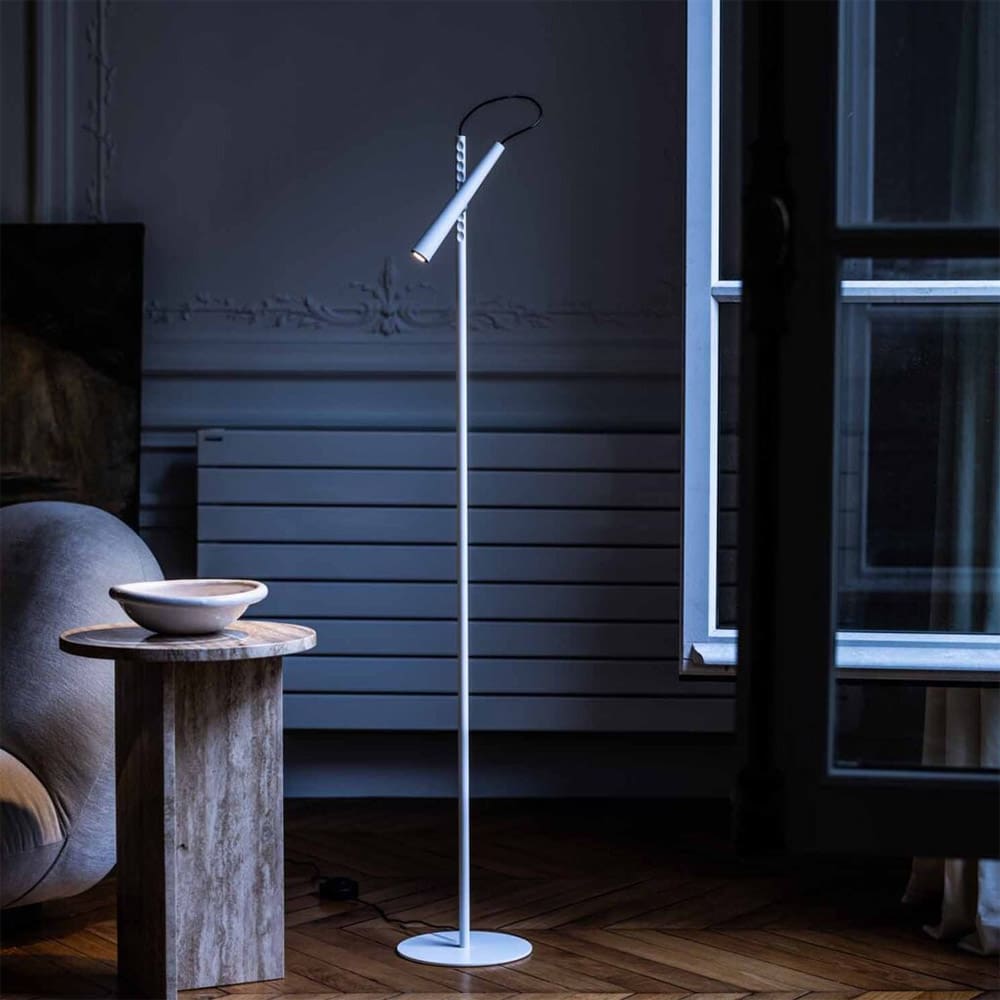 Magneto Lettura del marchio Foscarini, design di Giulio Iacchetti, è una lampada da lettura a luce diretta, perfetta per chi cerca funzionalità e innovazione. Il diffusore con LED integrato è realizzato in ABS masterizzato, mentre lo stelo e la base sono in acciaio verniciato a polveri epossidiche. Il cuore del progetto è il “super magnete” sferico in “terre rare”, costampato con un elastomero termoplastico, che funge da snodo. Questo permette al corpo illuminante di scorrere verticalmente lungo l’asta e di essere orientato a piacimento, come una torcia. Il cavo nero a vista, dotato di pedale on/off, si integra armoniosamente nel design. Magneto è una lampada versatile ed elegante, in grado di adattarsi alle esigenze luminose più diverse grazie alla sua capacità di proiettare la luce in modo preciso e personalizzato.
