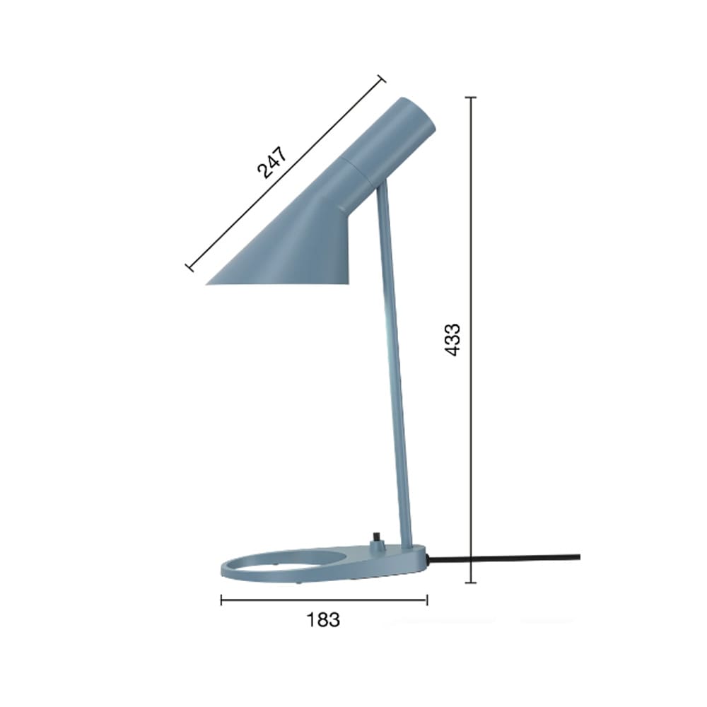 Originariamente progettata per il SAS Royal Hotel di Copenhagen nel 1957, la lampada AJ è una delle icone di design più significative di Arne Jacobsen. Inizialmente, la gamma di prodotti comprendeva una lampada a pavimento, una lampada a parete, una lampada da tavolo e una da tavolo più piccola, oltre a una lampada da tavolo progettata per essere fissata al tavolo. La lampada da tavolo emette una luce diretta verso il basso. L’angolo dello schermo può essere regolato di circa 90 gradi verso l’alto e verso il basso per ottimizzare la distribuzione della luce. Lo schermo è dipinto di bianco all’interno per garantire una luce morbida e confortevole. AJ Mini ha una forma iconica e grafica, che si allinea perfettamente allo stile di design di Jacobsen e contrasta con la curvatura di alcuni mobili del SAS Royal Hotel. Il design senza tempo della lampada la rende perfetta per ogni ambiente interno e nel corso degli anni le tonalità sono state adattate alle tendenze moderne degli interni.