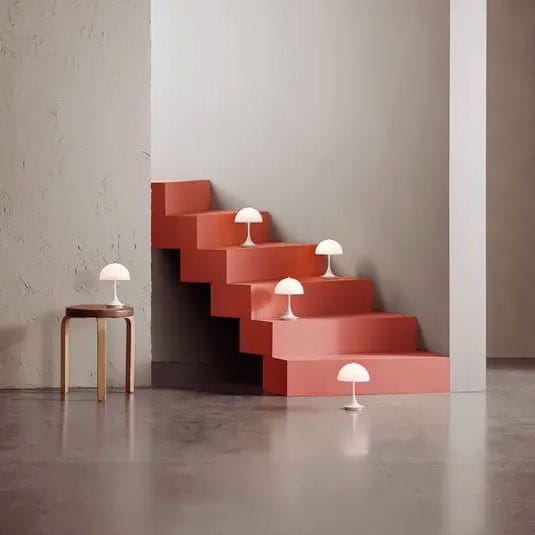 La lampada da tavolo Louis Poulsen Panthella portatile illumina ogni spazio in modo armonioso e senza abbagliamento. La lampada da tavolo portatile è disponile in opalino, la trasparenza dello schermo e il riflesso della luce diretta verso il basso sul lato interno dello schermo crea un’illuminazione delicata e un’atmosfera elegante.