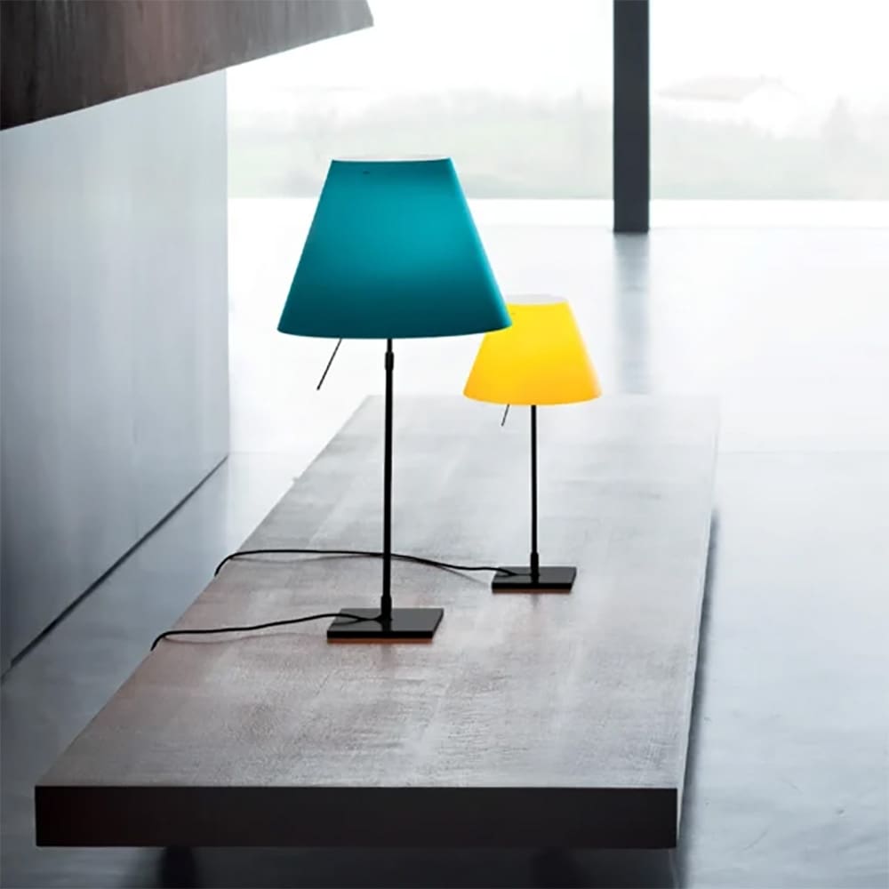 La lampada da tavolo Costanza del marchio Luceplan, design di Paolo Rizzatto, rappresenta un’iconica fusione tra tradizione e innovazione. Il paralume intercambiabile in policarbonato diffonde una luce calda e accogliente, perfetta per ogni ambiente. Il dimmer sensoriale ad astina consente di regolare la luce su quattro livelli di intensità, offrendo massima versatilità. Disponibile con strutture in nero, alluminio o ottone, e con paralumi in un’ampia gamma di colori: nero, bianco, grigio cemento, giallo vivo, rosso primario, rosa mistico, bianco nebbia, blu petrolio, verde alchimia, cipria e nocciola. Costanza è la scelta ideale per chi cerca un design senza tempo e funzionalità contemporanea, aggiungendo un tocco elegante e personalizzabile agli spazi abitativi.