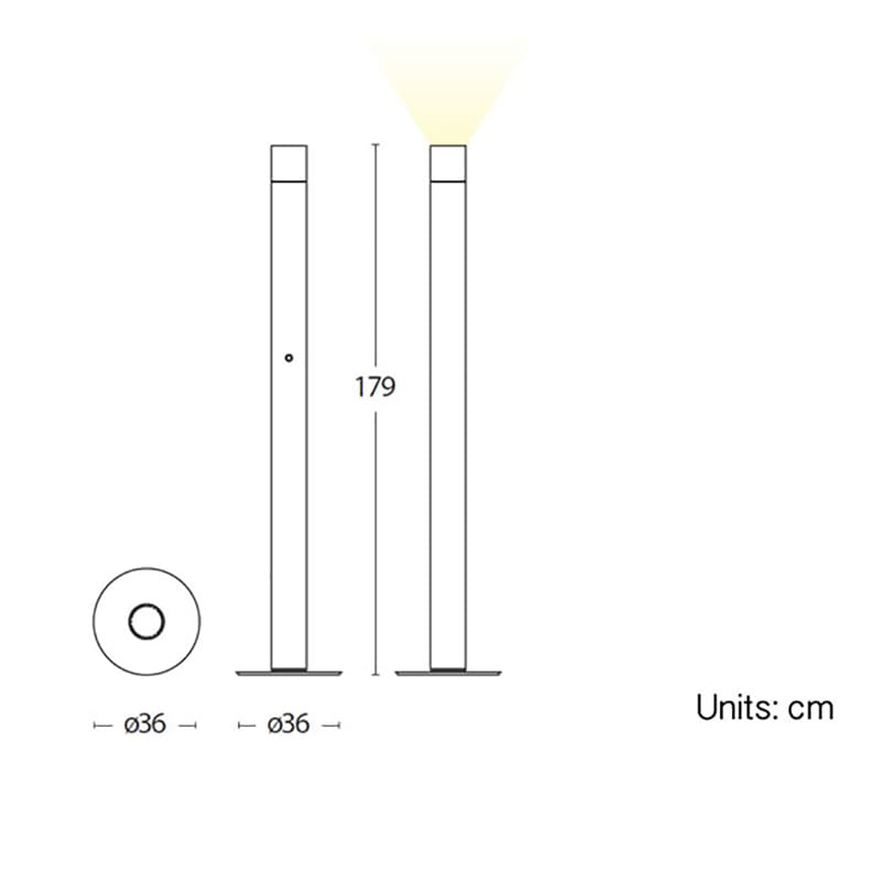 Sorgente luminosa: LED COB (incluso) – 50w – 2700k – 220/240V – 4800 lumen – CRI>90 – IP20 – PUSH dimmer incluso . Dimensioni: Ø Corpo: 12 cm Base: 36 cm H 179 cm