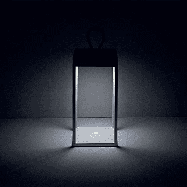 Lampada da tavolo ricaricabile tramite micro USB, 9 ore di autonomia, dimmerabile e resistente ad acqua e polvere.