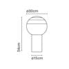 Sorgente luminosa: LED SMD 700mA 8,6W (inclusa) – 2700K – CRI90 – 765 lumen – dimmerabile. Dimensioni: Ø 30 cm H 54 cm