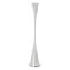Lampada da terra a luce indiretta. Corpo stampato in resina verniciato nei colori bianco e nero. Oggi, proposta anche nel nuovo colore dorato. Diffusore in metacrilato opal bianco. Con regolatore d’intensità luminosa sul cavo. Sorgente di luce a LED integrato. Alimentatore elettronico dimmerabile nel corpo lampada.Disegnata da Elio Martinelli nel 1987 la lampada nasce dal vuoto generato da un anello di circonferenze quasi tangenti, a formare come un canale che mette in comunicazioni due mondi: il vecchio ed il nuovo millennio. La forma neoclassica ne permette l’inserimento in ogni tipo di ambiente e le dimensioni contenute non comportano problemi di spazio per la sua collocazione.