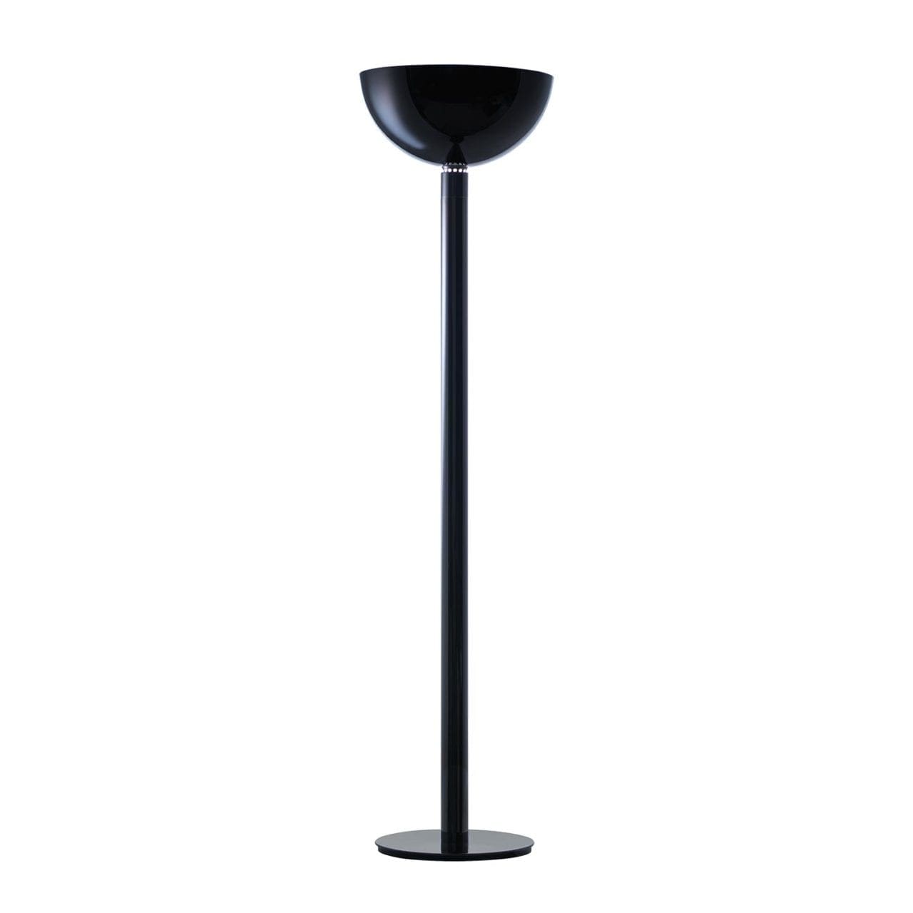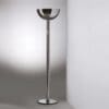 Lampada da terra con struttura in metallo cromato. Diffusore in vetro bianco opalino per la versione AM2C e in metallo cromato, cromato nero o bianco per la versione AM2Z. Luce diffusa verso l’alto, dimmer sul cavo.