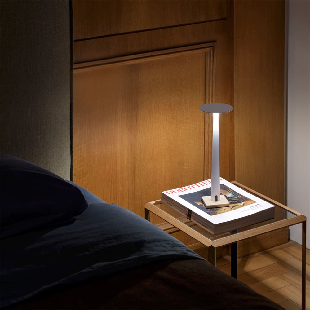 Portofino è una lampada da tavolo sottile, slanciata e leggera disegnata da Valerio Sommella e prodotta dal marchio Nemo. Portatile e ricaricabile. Un progetto contemporaneo, dall’utilizzo versatile. Frutto di un percorso guidato dalla ridefinizione dell’architettura del prodotto, dalla ridistribuzione dei componenti e dalla loro ottimizzazione in termini di volume ed efficienza. Realizzata in alluminio, e in una versione più elegante con una base in marmo in diverse essenze.