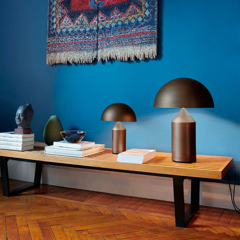 Atollo, disegnata da Vico Magistretti per Oluce nel 1977, è un’icona intramontabile del design italiano. Vincitrice del Compasso d’Oro nel 1979, questa lampada da tavolo ha rivoluzionato il concetto di abat-jour, grazie alla combinazione di forme geometriche essenziali: cilindro, cono e semisfera. Il suo design minimalista e senza tempo si adatta perfettamente a qualsiasi ambiente, sia classico che moderno. Atollo è disponibile in tre dimensioni e nelle finiture metallo bianco, nero, bronzo satinato e oro satinato, offrendo un’illuminazione raffinata ed elegante. La sua luce diffusa crea un’atmosfera accogliente, rendendola una scelta perfetta per spazi residenziali e professionali. Un must-have per gli amanti del design, Atollo è oggi riconosciuta come uno dei capolavori della storia dell’illuminazione.
