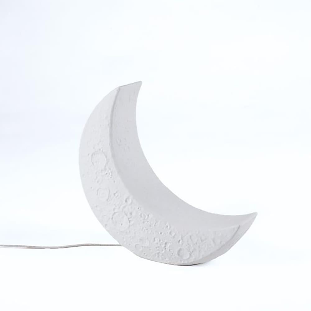 MY TINY MOON, del marchio Seletti, design Marcantonio. Una lampada da tavolo in porcellana che porta la magia della luna direttamente nelle tue mani. Con il suo design compatto e luminoso, My Tiny Moon è l’alleata perfetta per illuminare le tue lezioni notturne, accompagnarti nei momenti di studio o trasportarti con l’immaginazione in viaggi galattici. Elegante e sognante, questa lampada unisce funzionalità e creatività, diventando un elemento decorativo unico per la casa o l’ufficio. Il fascino della luna, reinterpretato con cura, aggiunge un tocco di magia e ispirazione a qualsiasi ambiente.