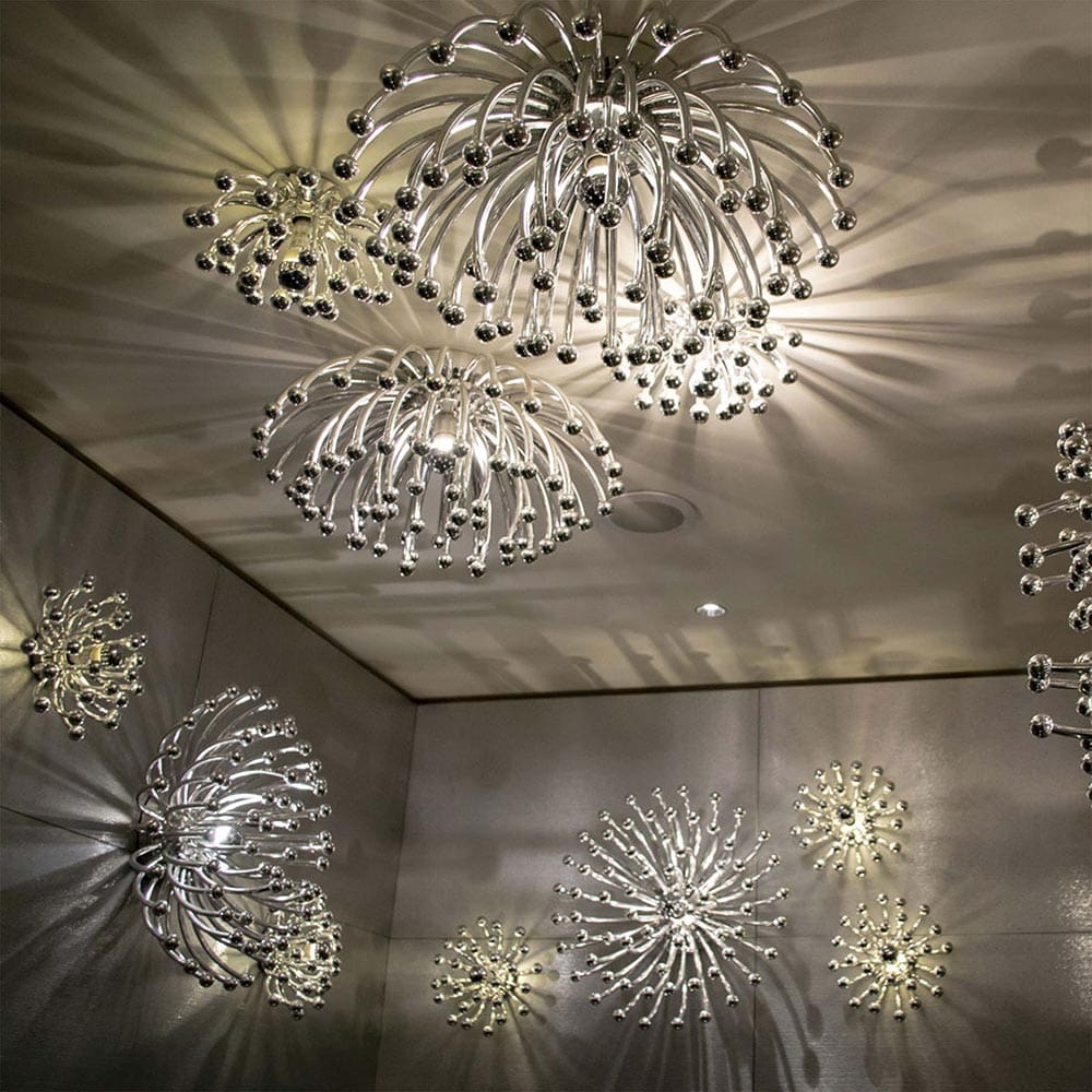 Pistillo del marchio SP Light and Design, disegnata da Studio Tetrarch, è una lampada versatile e di grande fascino, concepita per essere utilizzata come lampada da tavolo, parete o soffitto. Realizzata negli anni ’70, Pistillo si distingue per il suo design iconico che richiama forme naturali e floreali, offrendo un tocco di eleganza e classe senza tempo. La sua struttura modulare in metallo si estende armoniosamente nello spazio, diffondendo una luce calda e avvolgente che crea un’atmosfera rilassante e sofisticata. La lampada è disponibile in diverse finiture, rendendola ideale per ambienti sia moderni che classici, in cui aggiunge un elemento decorativo unico. Con Pistillo, ogni ambiente assume una personalità distintiva, unendo funzionalità e stile in un design raffinato e altamente decorativo.