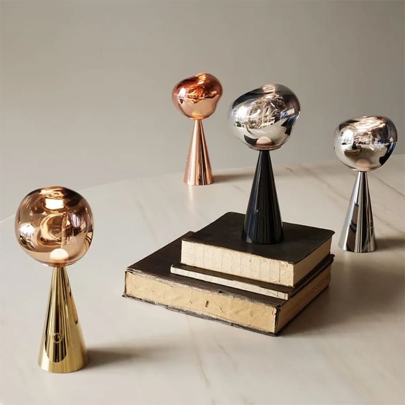 Melt Portatile LED amplia la collezione Tom Dixon, offrendo lo stesso affascinante effetto di vetro soffiato a caldo in un design portatile. Melt evoca il vetro fuso, l’interno di un ghiacciaio in scioglimento o immagini dello spazio profondo. Melt Portatile LED è disponibile in un’ampia gamma di finiture, tra cui rame, oro, argento e nero. La batteria ricaricabile ha una autonomia di 10 ore. Melt è un globo luminoso distorto nato dalla collaborazione tra il marchio Tom Dixon e FRONT, collettivo svedese di design radicale.