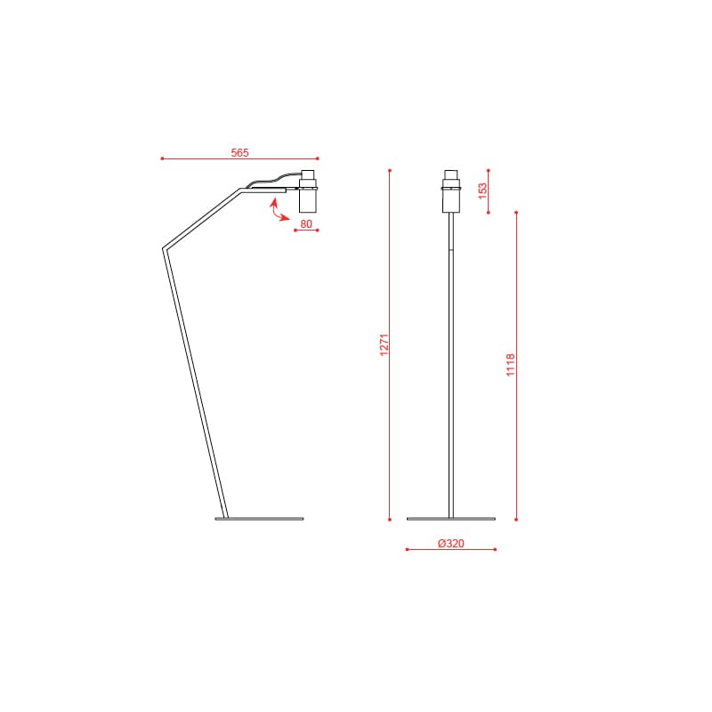 Sorgente luminosa: LED max 4,5 W GU10 (non inclusa) – 220/240 V – Dimmer in base alla lampadina – IP20. Dimensioni: L 56,5 cm Ø 32 cm H 127,1 cm
