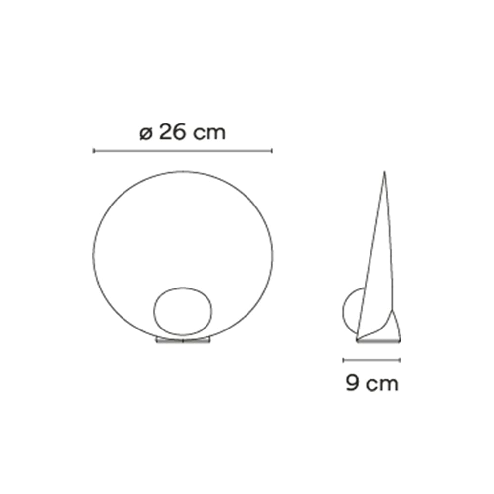 Sorgente Luminosa: 1 x LED 4,48W 350mA – 2700K – 449 lumen – CRI>90 – tensione costante 100-240 V – IP20. Dimensioni: W 9 cm Ø 26 cm