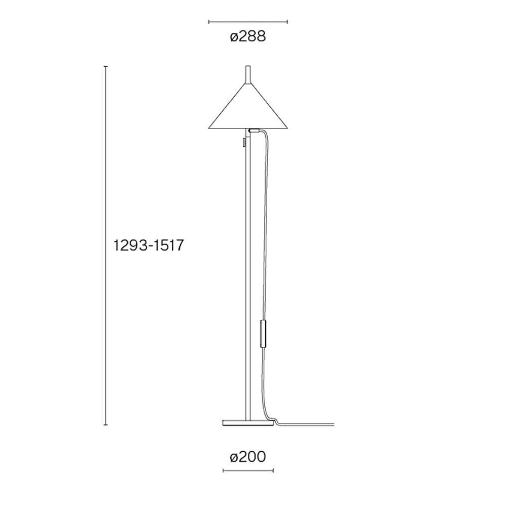 Sorgente luminosa: Integrated LED 15 W / 100-240 V / 2700K / Dimmer su cavo/ 850 lumens / IP 20 / CRI≥90. Dimensioni:: H 1293-1517 mm Ø 200 mm