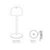 Sorgente Luminosa: LED 2,2 W – 2200 K/3000 K – 214 lumen/224 lumen – CRI>80 – 5 Vdc max 1A – batteria -Dimmerabile – IP65. Dimensioni: H 30 cm Ø 11 cm