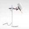 Marset Scantling S. Lampada da tavolo con base e struttura in ferro. Braccio in rovere che supporta un diffusore in alluminio. L’interruttore è integrato al diffusore.