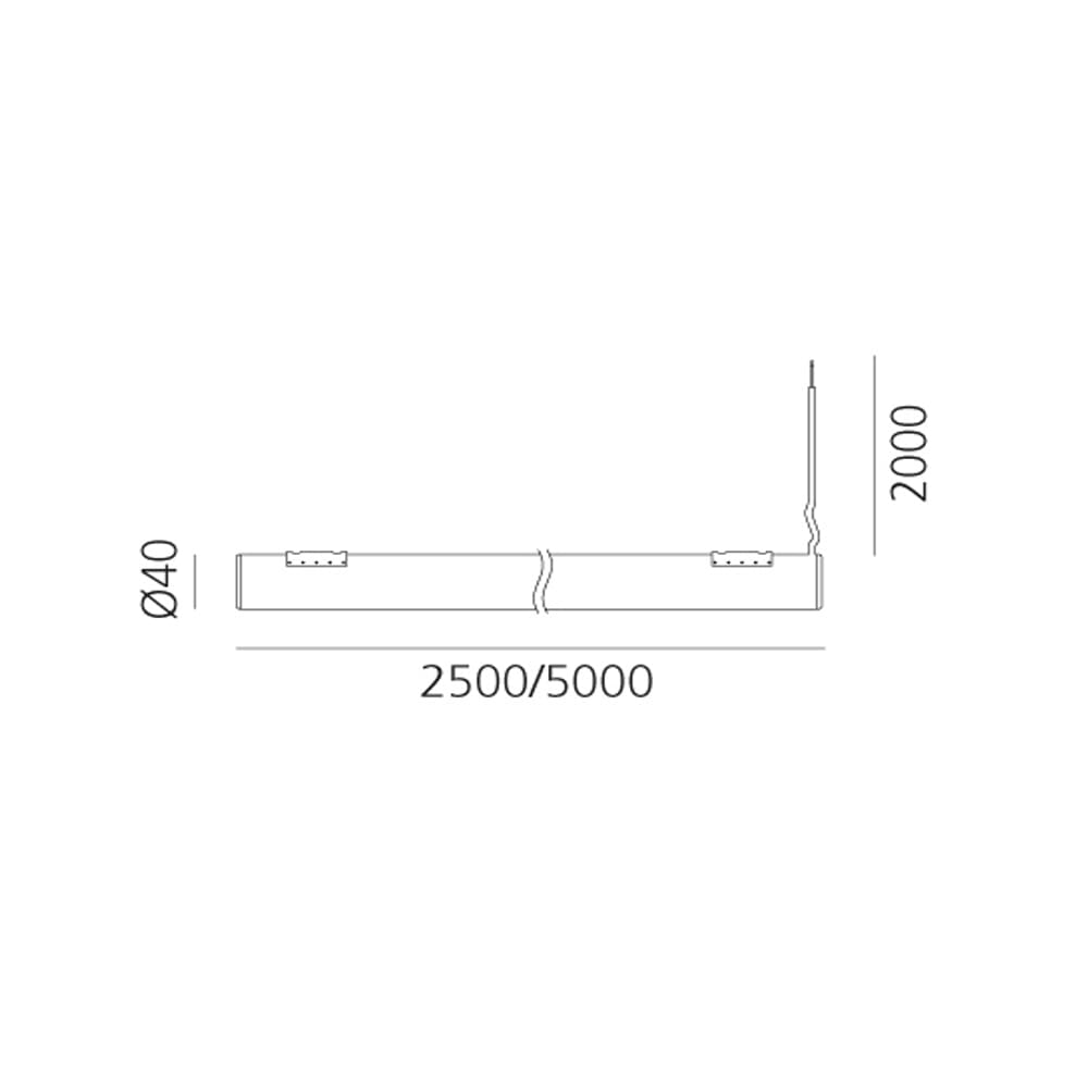 Sorgente luminosa: LED 15W – 3000 K – 960 lumen – CRI=95 – Dimmer APP/Push/DALI – 220-224V – IP65. Dimensioni: L 250 cm Ø 4 cm