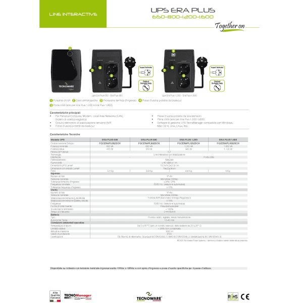 Tecnoware UPS ERA PLUS 1600 SCHIUKO TOGETHER ON