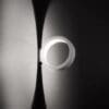 Lampada a LED da esterni a parete e soffitto a luce indiretta. Pensata anche per arredare senza soluzione di continuità l’ambiente interno ed esterno ricreando sia in casa che nel proprio giardino le stesse caratteristiche estetiche, con le stesse possibilità di disegno di luci e ombre. Può quindi essere installata da sola o in serie per decorare e arricchire una facciata, un porticato, qualsiasi muro esterno.