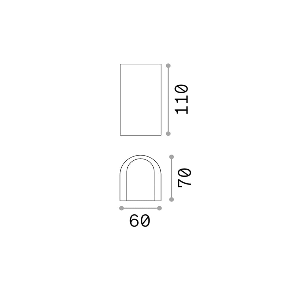 Sorgente Luminosa: LED 6 W (E14 OLIVA 4W, lampadina inclusa) – 4000 K – 800 lumen – 220-240V – CRI>80 – IP44. Dimensioni: L 70 mm W 60 mm H 110 mm