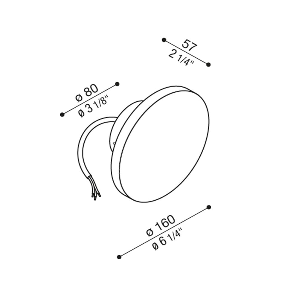 Sorgente Luminosa: LED 9W – 1035 lumen – 2700 K – CRI>80 – AC DIRECT 220/240V – IP65. Dimensioni: Ø 160 mm W 57 mm