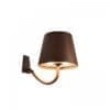 Lampada ricaricabile a parete, con corpo in alluminio verniciato bianco o corten opaco, diffusore in policarbonato e fonte luminosa a LED.