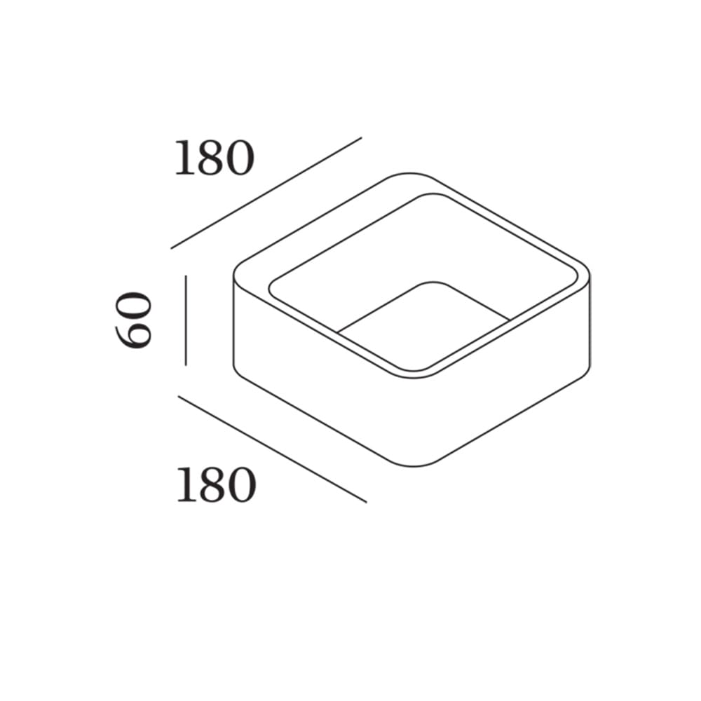 Sorgente Luminosa: LED x 7.8W – 430 lumen – 3000 K – CRI≥90 – 220/240 V – phase-cut dim – IP65. Dimensioni: H 60 mm L 180 mm W 180 mm