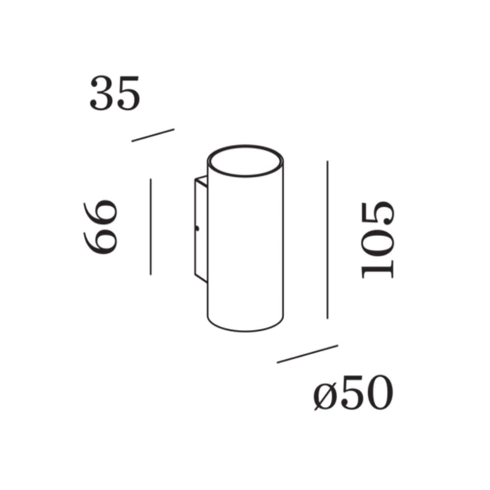 Sorgente Luminosa: LED 8,5 W – 3000 K – 720 lumen – 220/240 V – dimmer a taglio di fase – IP65. Dimensioni: H 105 mm Ø 50 mm