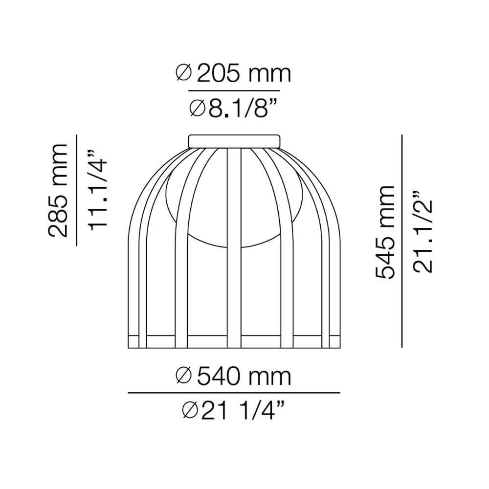 Sorgente luminosa: LED 10W 2700K – Ang. 120º – >90 CRI – 230V – 870 lumen – Triac dimmerabile. IP65. Dimensioni: Ø 540 mm – H. 550 mm