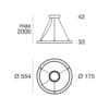 Sorgente Luminosa: 1 topLED 29W – 3924 lumen – 3000 K – CRI=80 – 220-240 V – IP65. Dimensioni: H max. 2000 mm Ø 554 mm