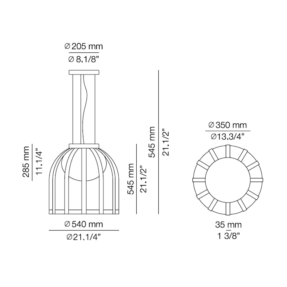 Sorgente luminosa: LED 10W 2700K – Ang. 120º – >90 CRI – 230V – 870 lumen – Triac dimmerabile. IP65. Dimensioni: Ø 540 mm – H. 545 mm