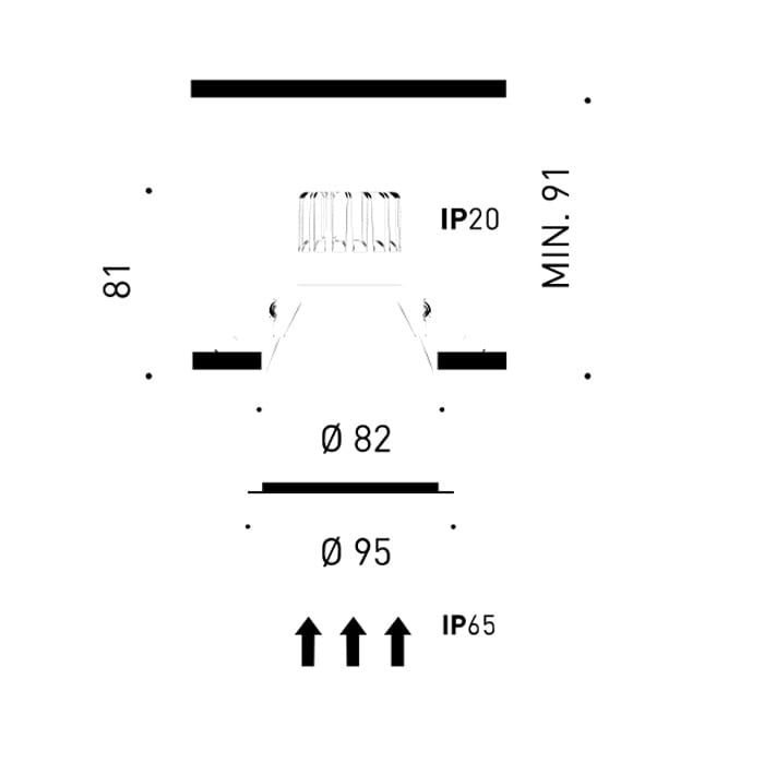 Sorgente luminosa: LED 7W 3000k – 940 lumen – 44°- CRI>90 IP65 – non dimmerabile. Dimensioni: incasso Ø75mm