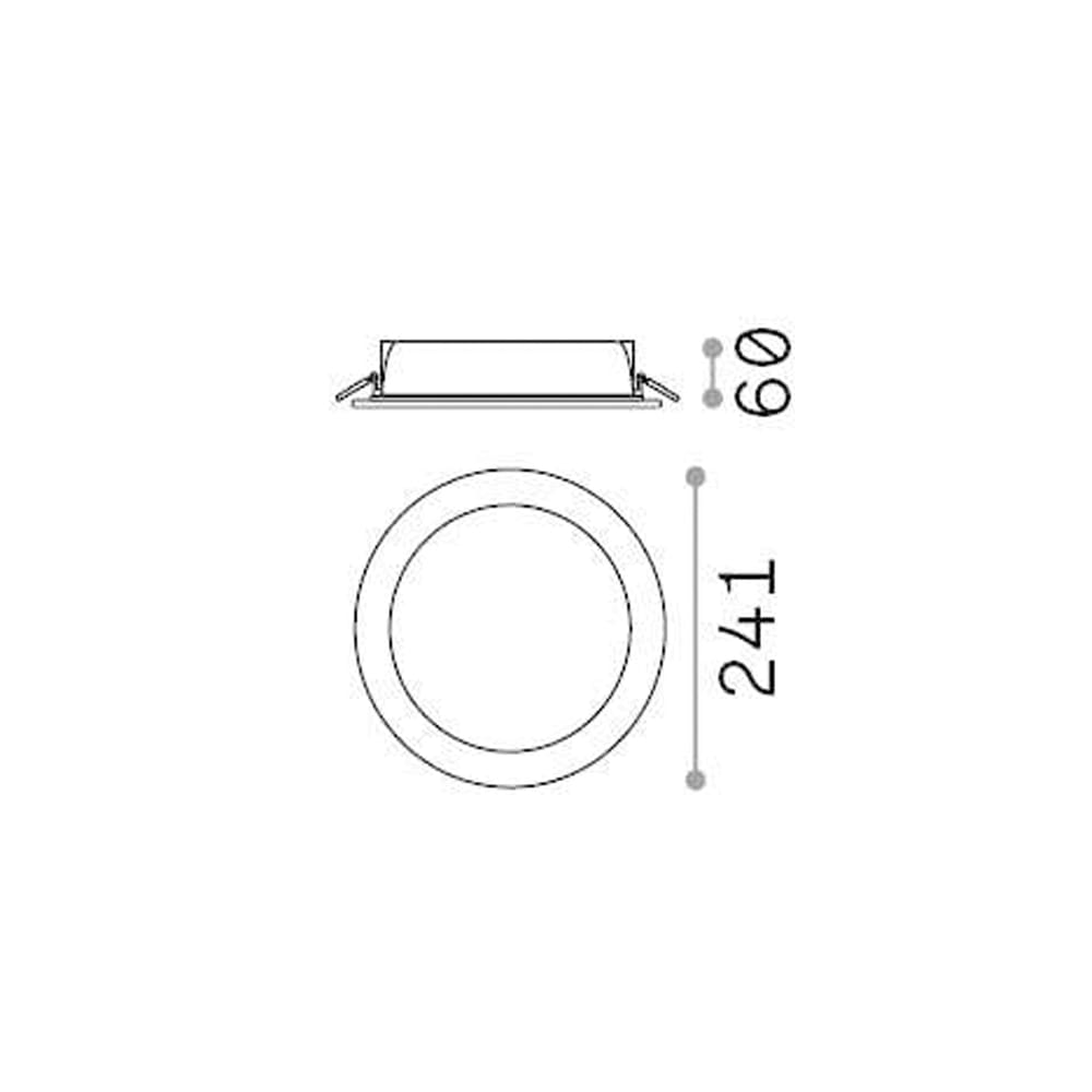 Sorgente Luminosa: LED SMD OSRAM 28 W (lampadina inclusa) – 3000 K – 3200 lumen – CRI>90 – 220-240V – IP65. Dimensioni: H 60 mm Ø 241 mm