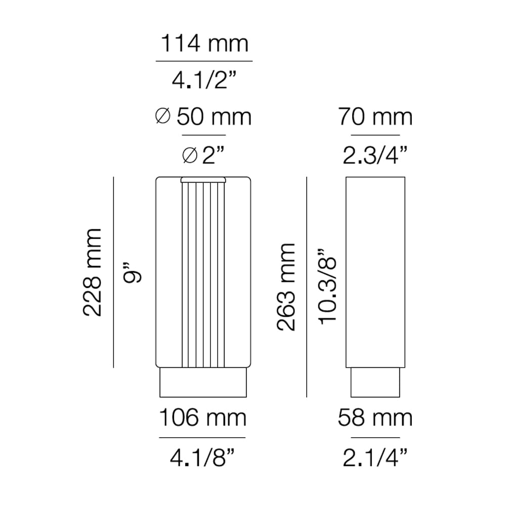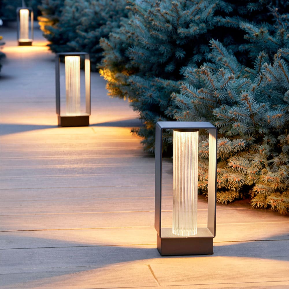 Paletto luminoso da esterno metallico con diffusore in vetro pyrex trasparente. LED integrato che fornisce luce diretta e indiretta. Rivestimento a doppio strato per un’elevata resistenza alla corrosione e ad altre condizioni ambientali. Cablato (senza spina).