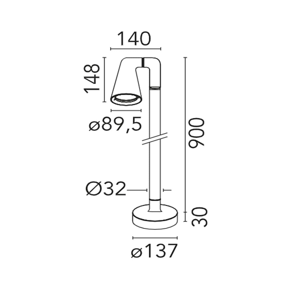 Sorgente Luminosa: LED 6W – 380 lumen – 3000 K – CRI>80 – 220/240V – IP65. Dimensioni: H 930 mm Ø 137 mm