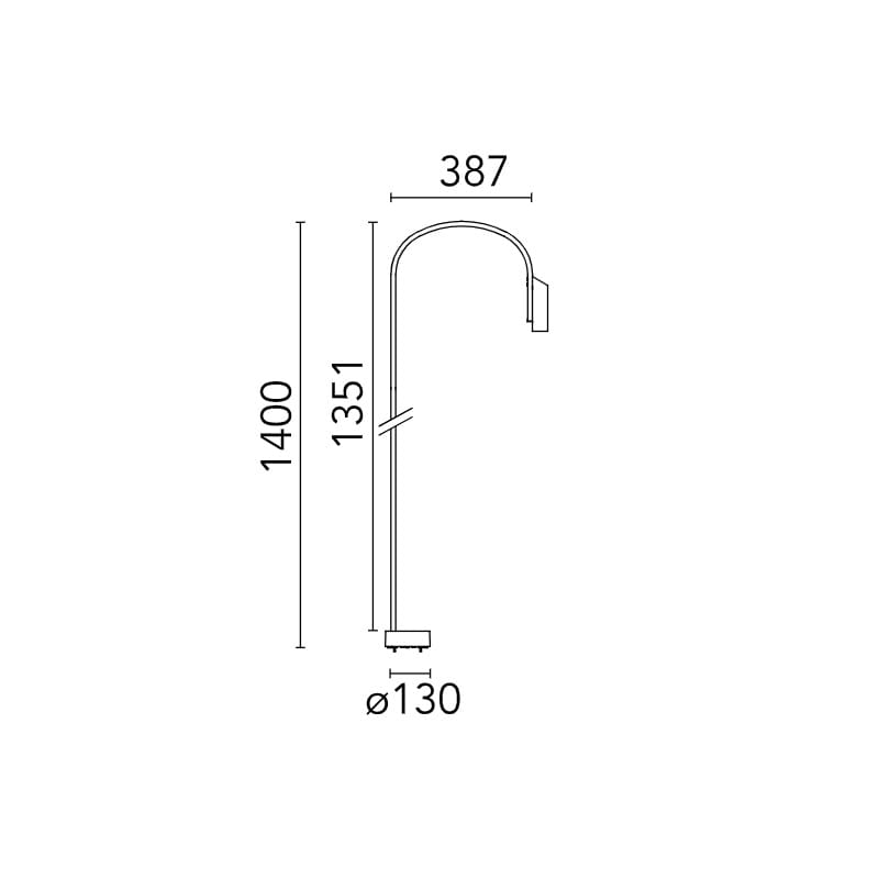 Sorgente luminosa: LED 5W 2700K – 282 lumen – CRI>80 – Beam° 52 – IP66 – 220-240V – dimmerabile DALI . Dimensioni: H 1400 mm W 387 mm Ø base 130 mm