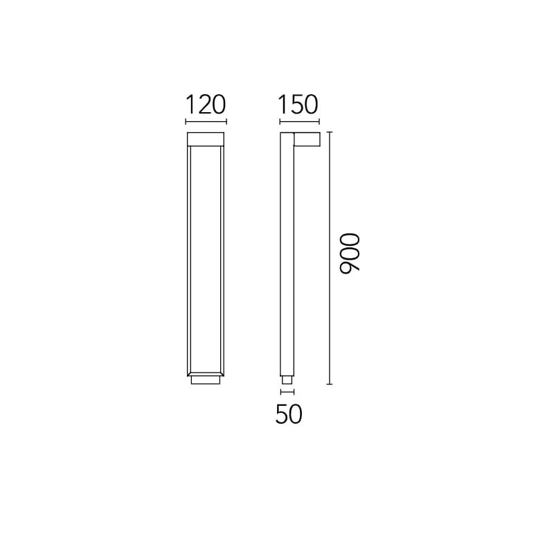 Sorgente luminosa: LED 4,9W 3000K – 294 lumen – CRI>80 – 220-240V – IP65 – non dimmerabile . Dimensioni: L 120 W 150 mm H 900 mm