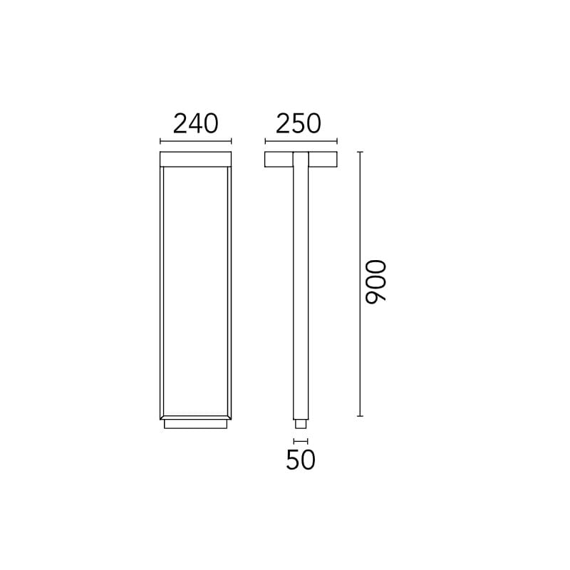 Sorgente luminosa: 2 LED 15,6W 3000K – 2 x 2×627 lumen – CRI>80 – 220-240V – IP65 – non dimmerabile . Dimensioni: L 250 W 240 mm H 900 mm