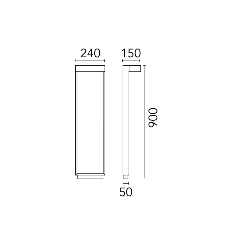 Sorgente luminosa: LED 7,8W 3000K – 627 lumen – CRI>80 – 220-240V – IP65 – non dimmerabile . Dimensioni: L 150 W 240 mm H 900 mm