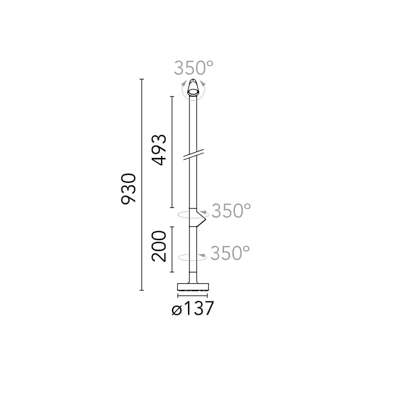 Sorgente luminosa: LED 8,5W 2700K – 333+185 lumen – CRI>80 – Beam° 54 – IP66 – 220-240V – dimmerabile DALI . Dimensioni: H 930 mmW 137 mm Ø 137 mm