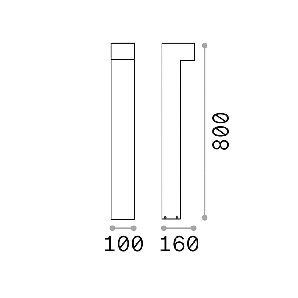 Sorgente Luminosa: G9 max 2 x 15 W (lampadina non inclusa) – 220-240V – dimmer determinato dalla lampadina – IP44. Dimensioni: L 100 mm H 800 mm W 160 mm