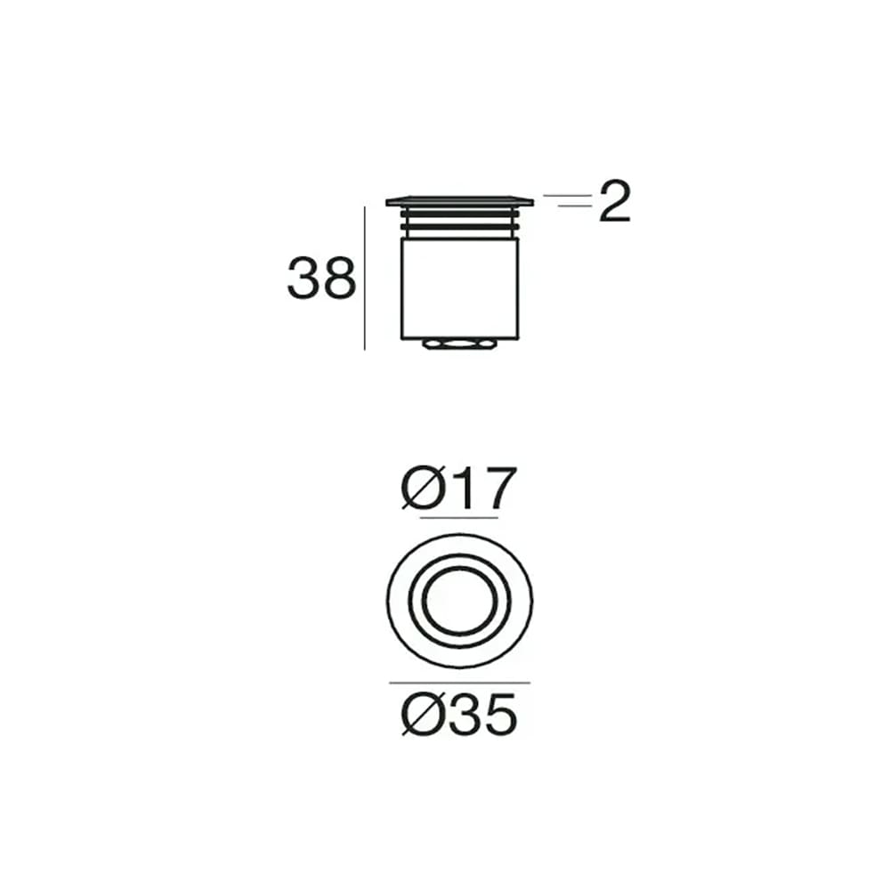 Sorgente Luminosa: 1 x powerLED 1.5W – 213 lumen – 3000 K – CRI=80 – 500 mA – IP68. Dimensioni: H 40 mm Ø 35 mm