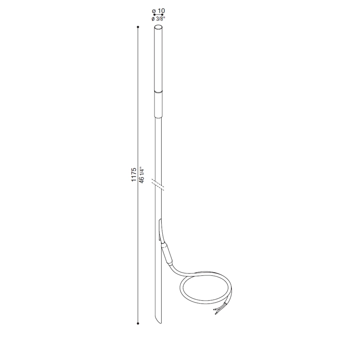 Sorgente luminosa: LED 1,5W 24V (driver escluso) 4000k – 140 lumen – IP 66. Dimensioni: ø 10mm H 1175mm. Cavo 3m PVC 2×0,25mm.