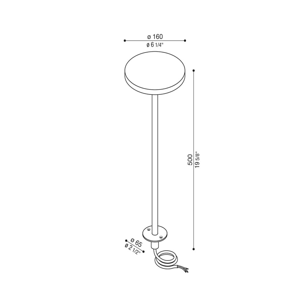 Sorgente Luminosa: LED 9W – 1035 lumen – 3000 K – CRI>80 – 24V – IP65. Dimensioni: H 500 mm Ø 160 mm