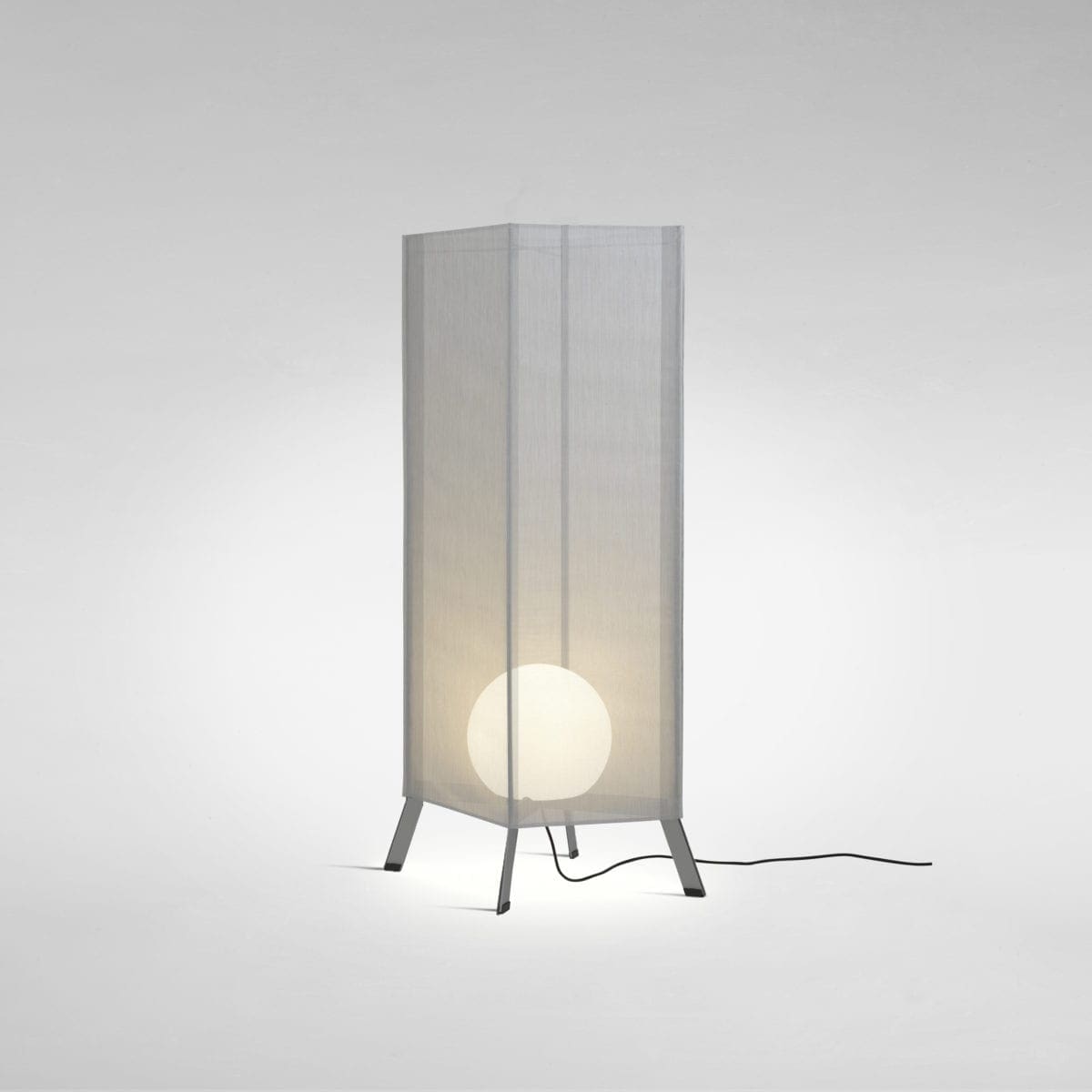Marset LaFlaca 120 Lampada da terra per esterno con struttura in acciaio inossidabile laccata in grigio e avvolta da tessuto di un unico colore. Diffusore in metacrilato traslucido.