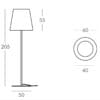 Sorgente Luminosa: 1 x 25W E27 (non incluso) – IP55. Dimensioni: H 205 cm Ø 60 cm Ø base 50 cm