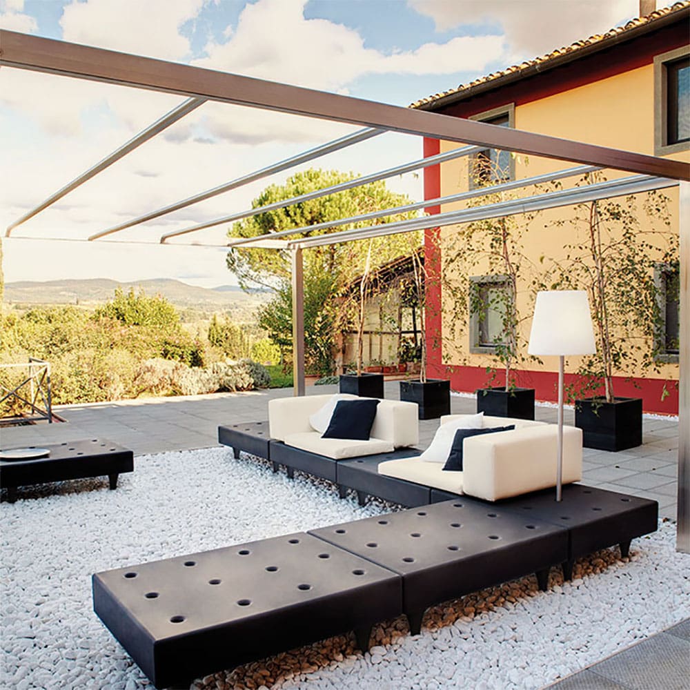 Fiaccola Ali Baba è una lampada da terra capace di dare un tocco di luminosa eleganza a giardini e dehor, grazie alla base che termina con un picchetto da piantare nel suolo. Il paralume in polietilene è impreziosito dalla texture arabeggiante in rilievo su tutta la superficie, che caratterizza l’intera collezione Ali Baba. La lampada da terra ha una base in acciaio inossidabile, resistente agli agenti atmosferici e che lo rende adatto a qualsiasi ambientazione outdoor di abitazioni private, contract ed eventi. Fiaccola Ali Baba è disponibile anche nella versione senza cavo, grazie al modulo a batteria RGB Candy Light.