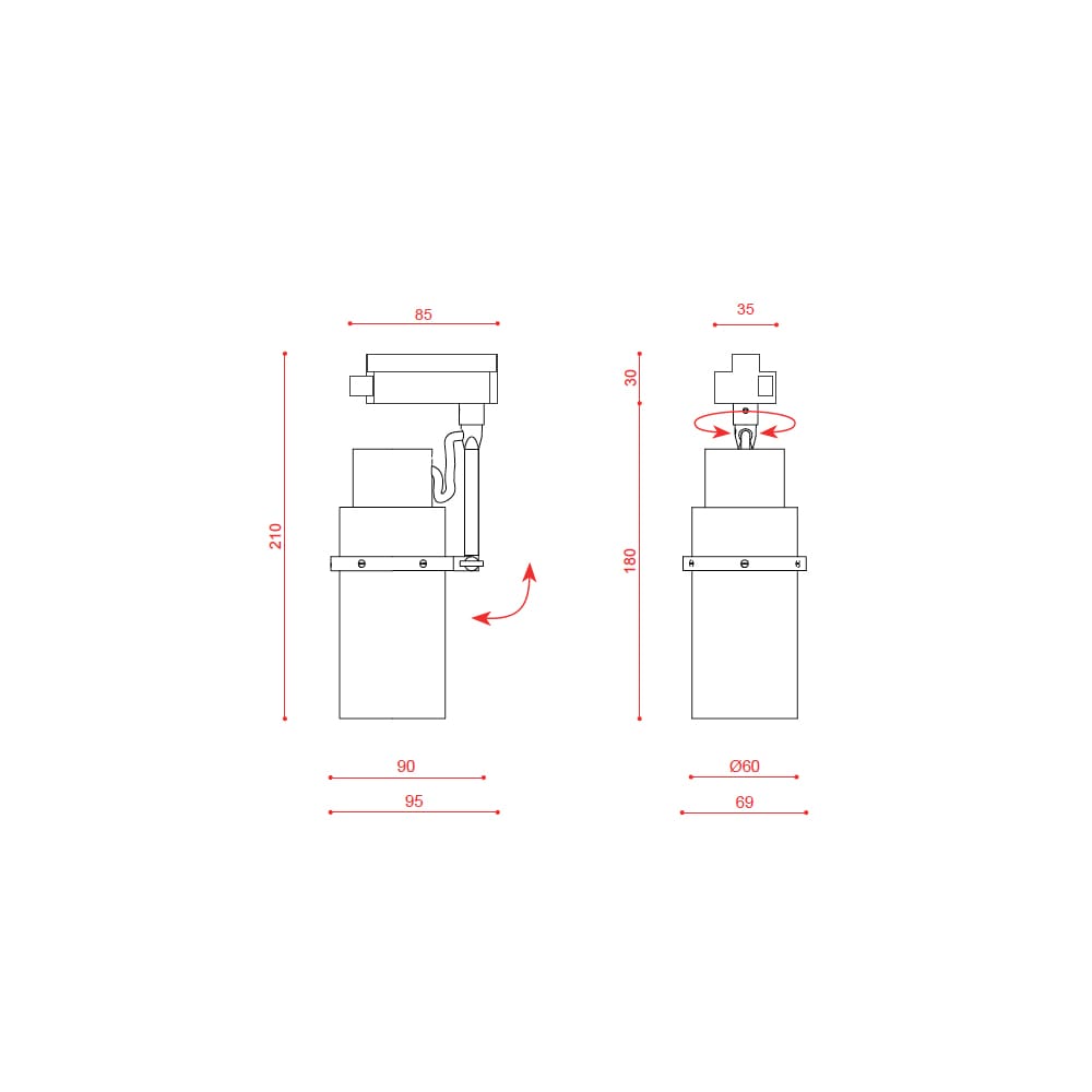 Sorgente luminosa: 1 x Gu10 – (LED): Max 4,5W – 230V – Dimmerabilità in base alla lampadina. Dimensioni: H 21 x L 9,5 cm