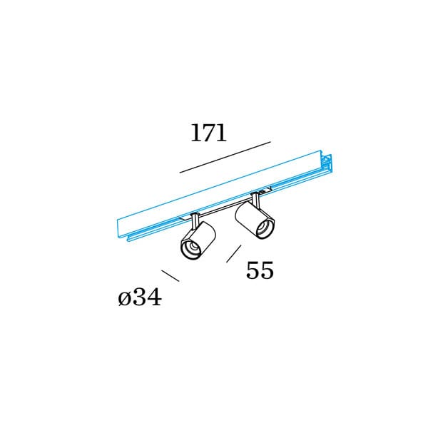 Sorgente luminosa: 2xLED COB 8W 48V / 3000K / IP20 / 1000 lumen / CRI≥90 / non dimmerabile . Dimensioni: Ø 34 mm H 55 mm