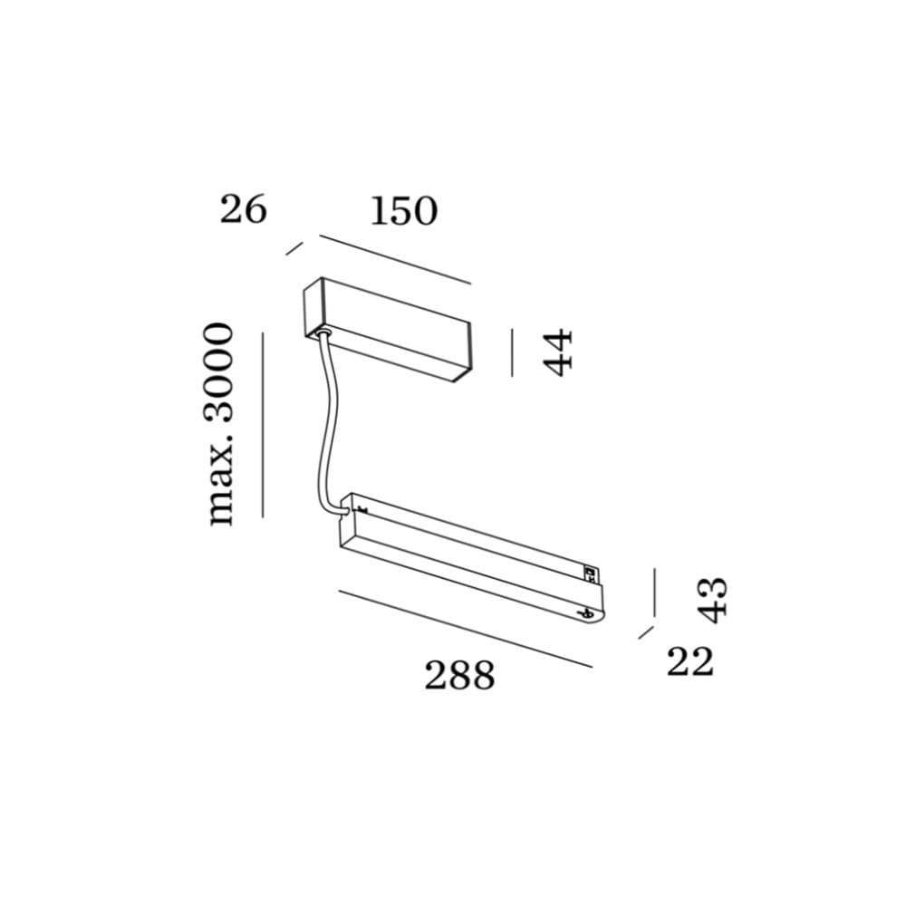 Sorgente luminosa: Sistema STREX | incluso alimentatore | 220-240VAC | 50-60Hz | 48V | incl. cavo di alimentazione da 3m. Dimensioni: H max 3000 mm L 288 mm