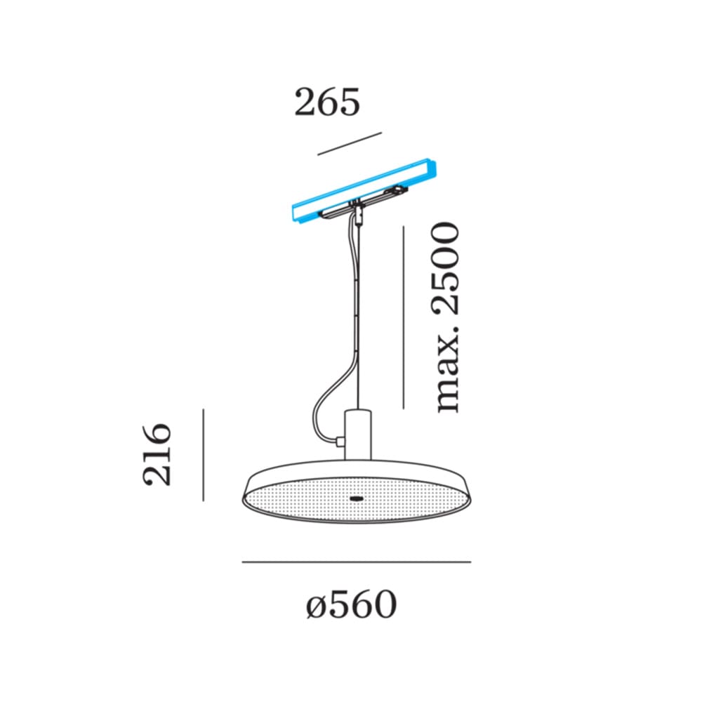 Sorgente luminosa: LED 35W – 3000K – 3700 lumen – CRI≥90 – 220-240V – Dimmer DALI-2 – IP20. Dimensioni: H 216 mm Ø 560 mm
